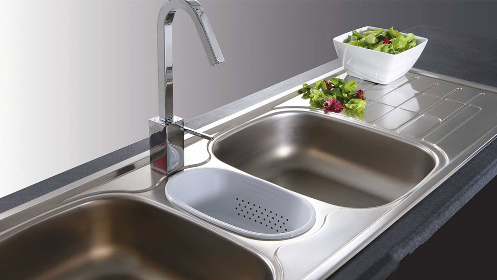 6- بعد از پایان کار سینک ظرفشویی را با آب بشویید تا جرم ها و لکه ها و چربی های جدا شده از سطح سینک جدا شوند .
